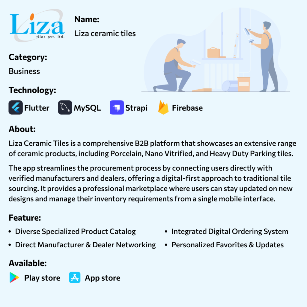 Liza Ceramic Tiles is a comprehensive B2B platform that showcases an extensive range of ceramic products, including Porcelain, Nano Vitrified, and Heavy Duty Parking tiles. The app streamlines the procurement process by connecting users directly with verified manufacturers and dealers, offering a digital-first approach to traditional tile sourcing. It provides a professional...