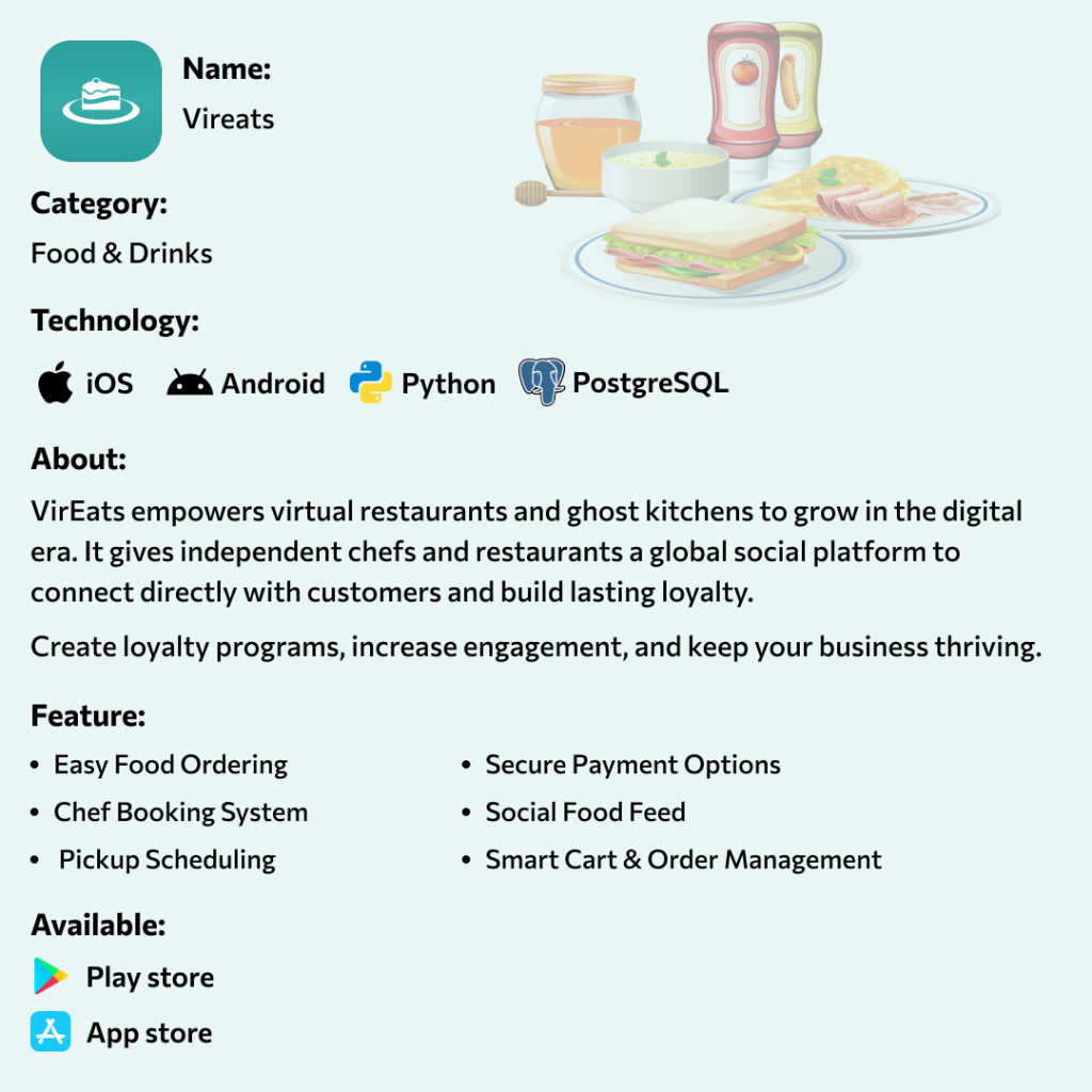 Vireats is a digital-first platform empowering virtual restaurants and ghost kitchens to scale in the modern era. It connects independent chefs directly with customers, offering a global social platform to build loyalty, manage orders, and grow a thriving food business through integrated marketplace features.